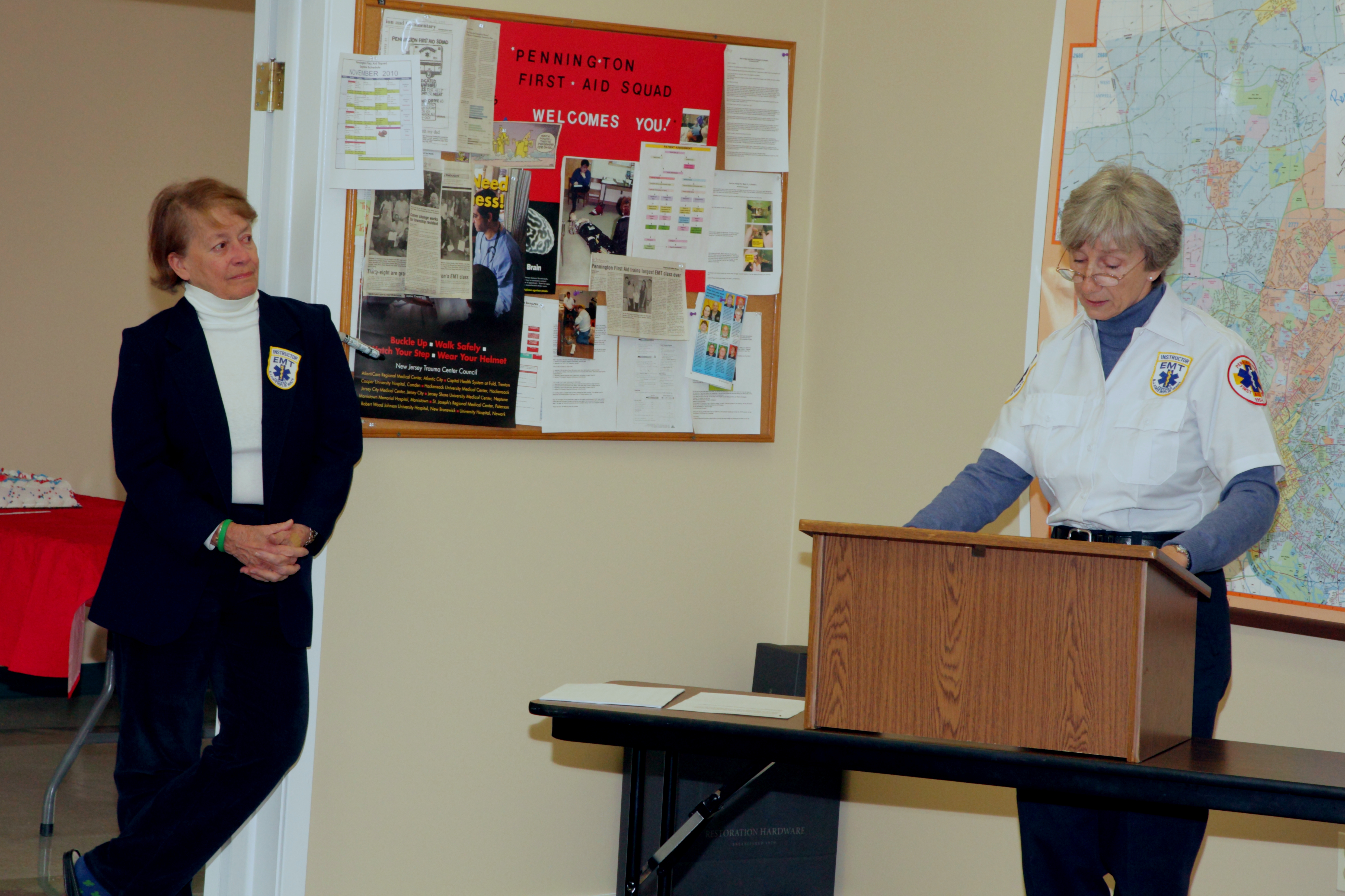 Linda Hlavacek receives bracelet award from Julie Aberger for over 25 years of teaching excellence