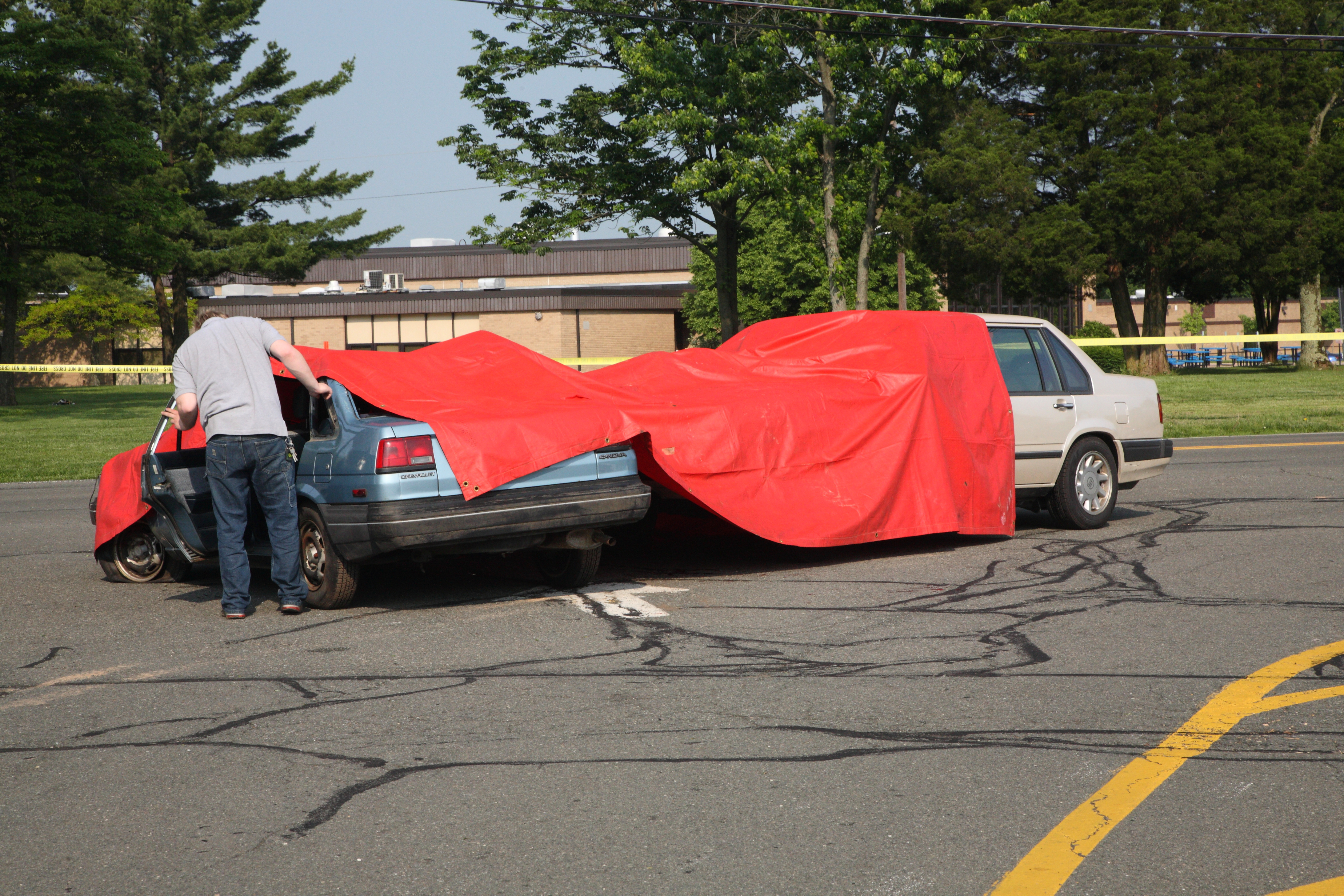Last minute check of actor status by Mark Reside of Pennington First Aid Squad.