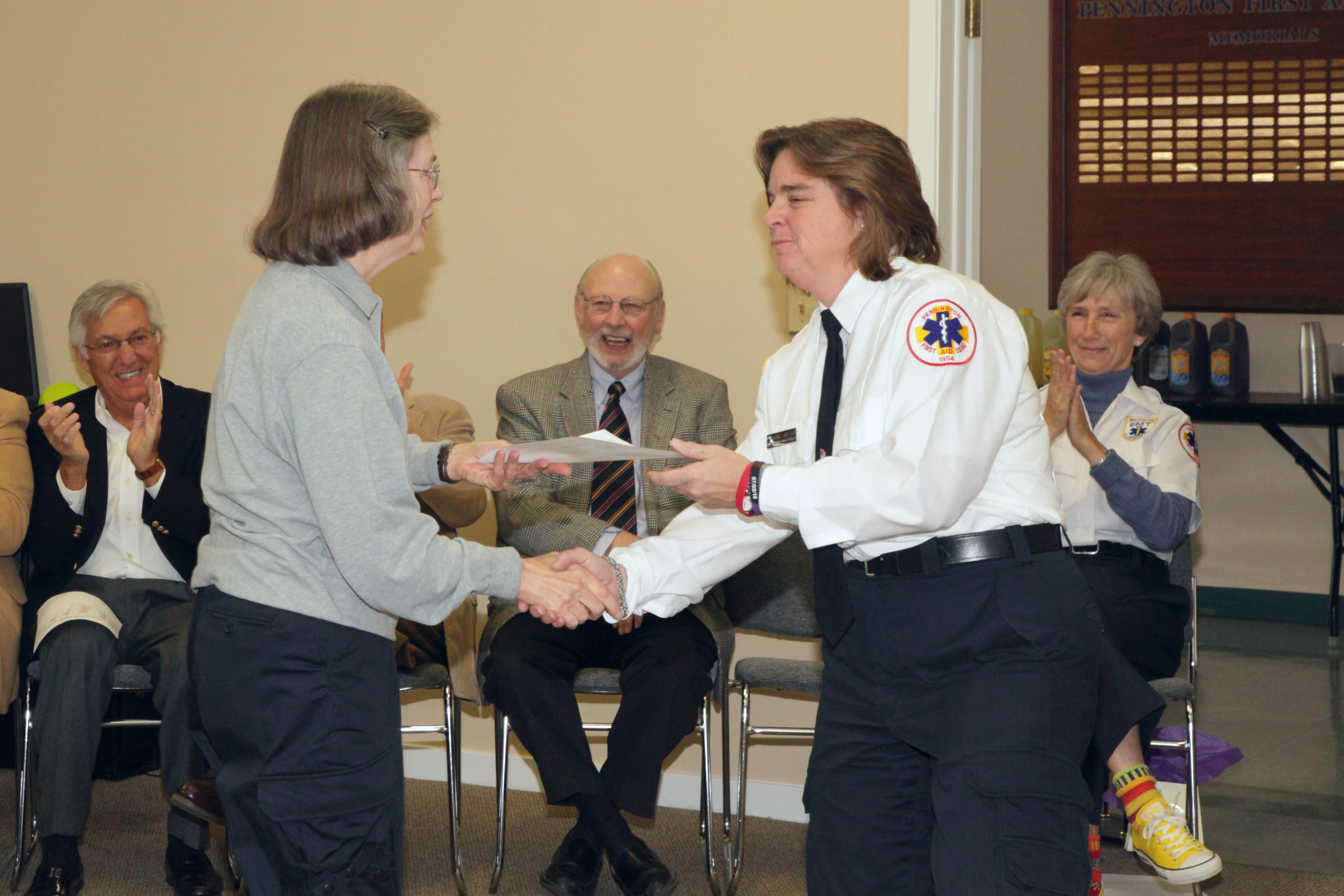 Award to Sergeant Panzano and Officer Crincoli of the Hopewell Township Police and EMT Naomi McCarty and James Li of the Pennington First Aid Squad.
