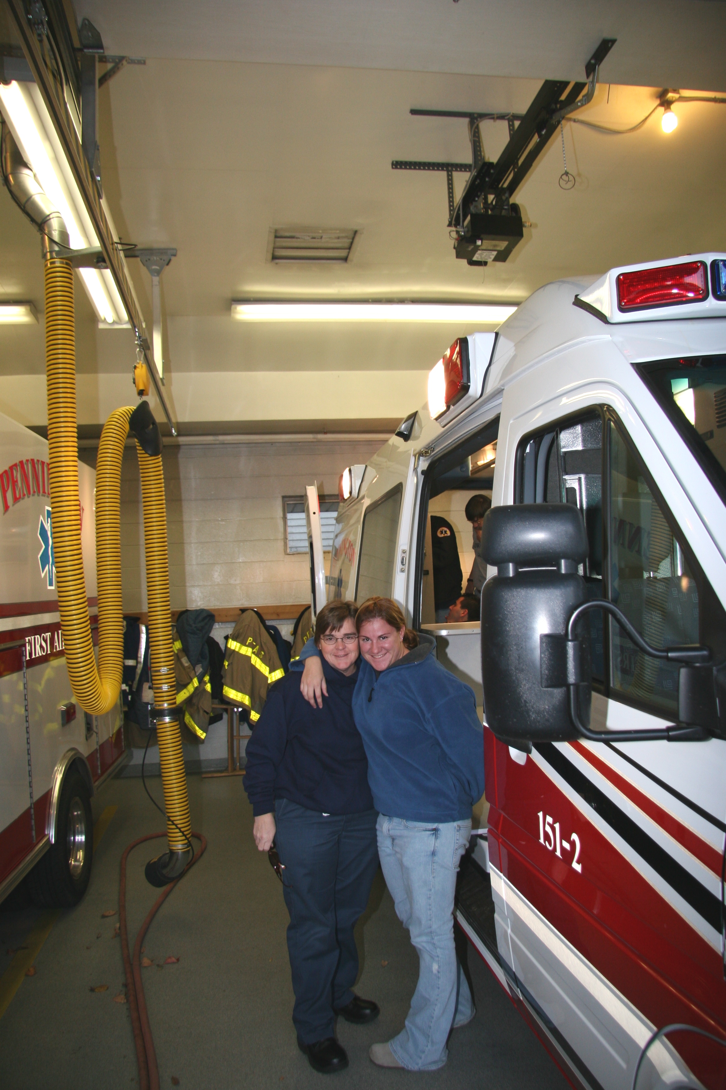 Julie Aberger and Kirk Schmitt, the only PFAS members who are still active with PFAS and responded to New York on 911. Behind them is 151-2, the ambulance that responded with 6 PFAS members (Leo Castenada, Kirk Schmitt, Zay Risinger, Steve Friedman, Eldrid Truelove, and Julianna Aberger) to lower Manhattan. 151-2 now lives out its life as a Hopewll township police department special services vehicle after retiring from PFAS.